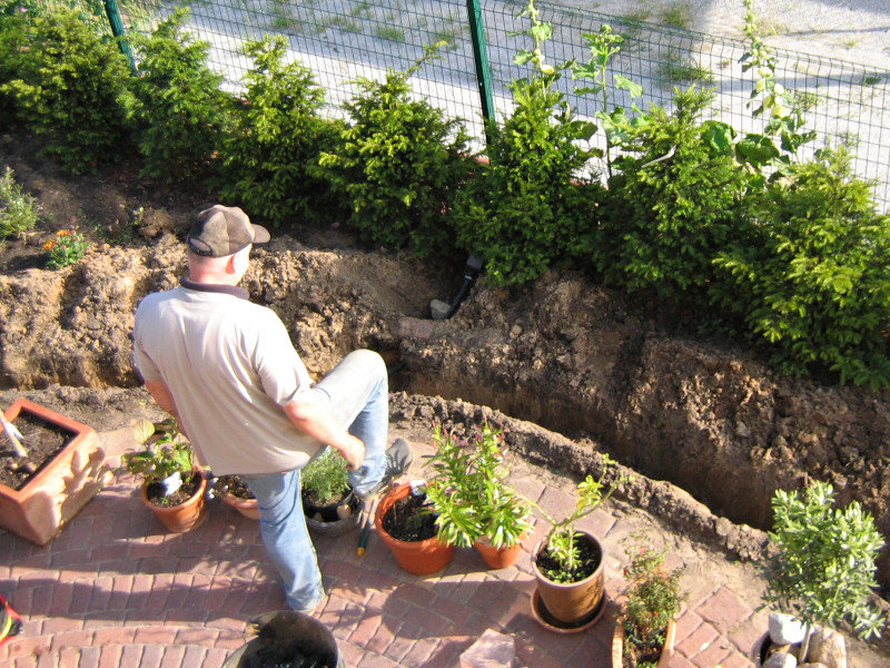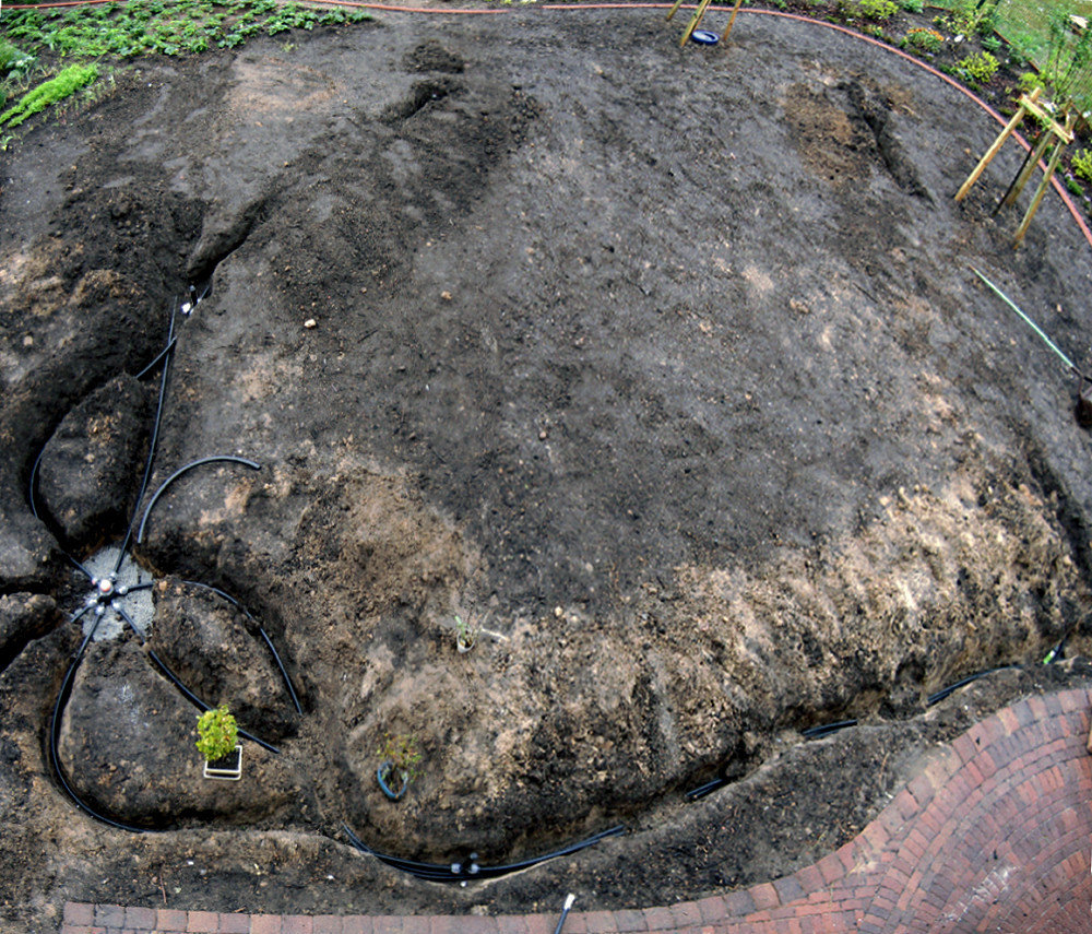 ![]() ...noch glatt harken, dann kann der Rasen drauf und vom Nass profitieren. |