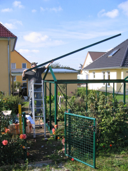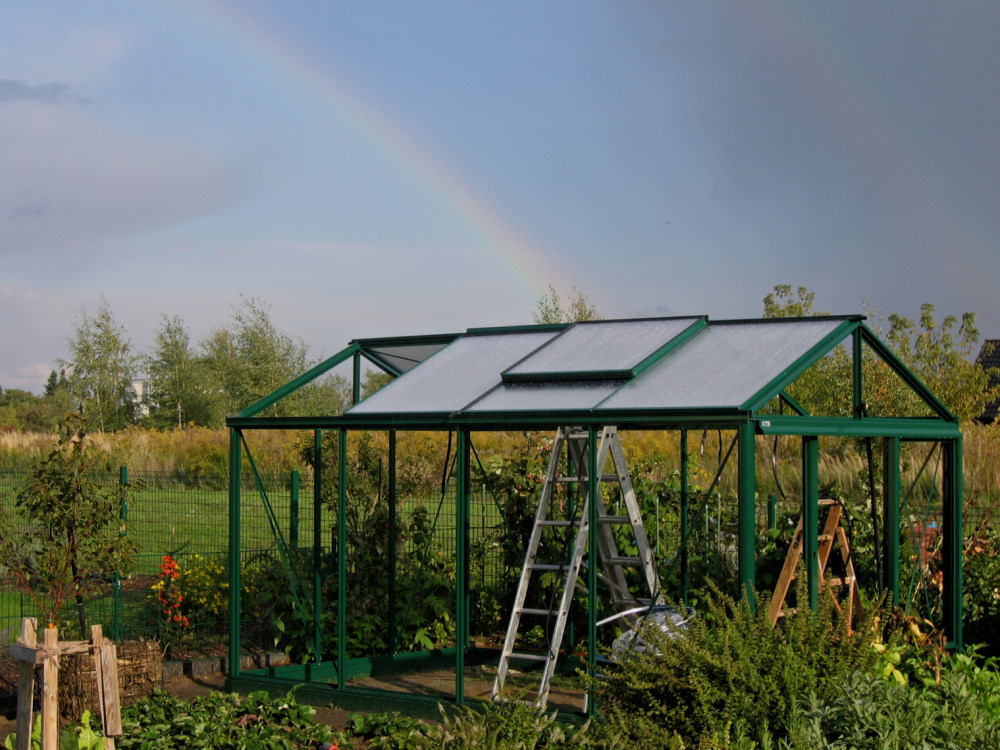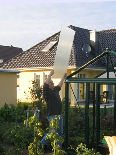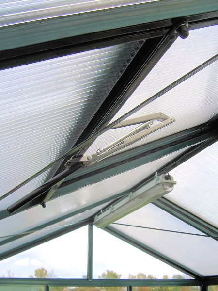 Das Dach besteht aus UV beständigen Makrolon 3-fach Stegplatten, die Seitenwände aus doppelwandigen Isolationsglas.