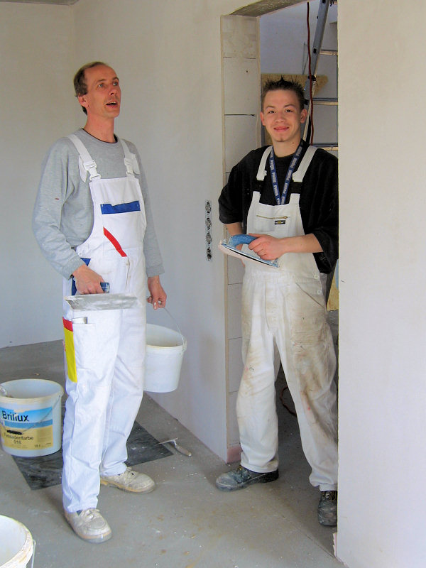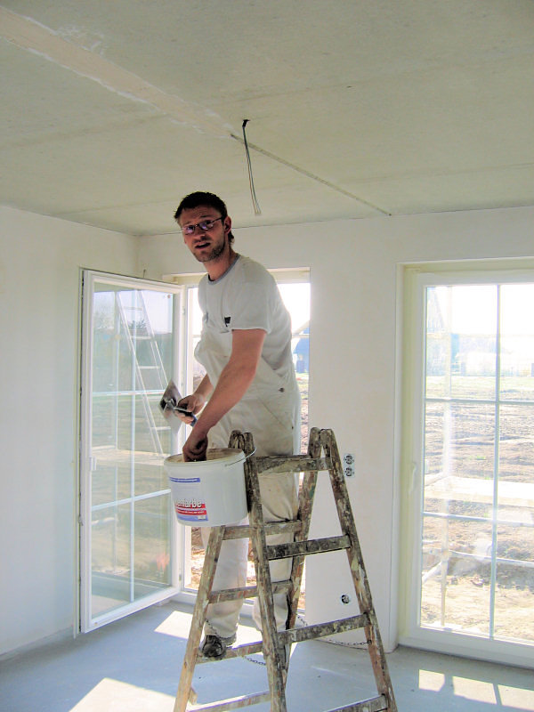 Die Verspachtlung, das Ebnen der Decken überlassen wir den Profis, der Firma Maler und Lackierer aus Werder. Die Wände sind dann unsere Eigenleistung.