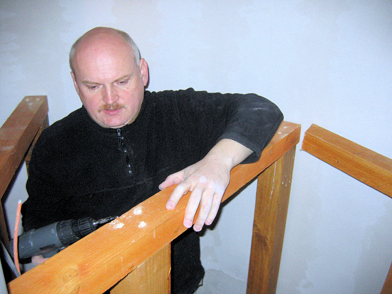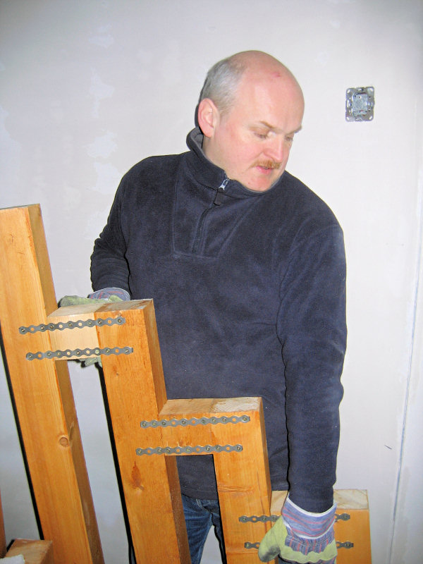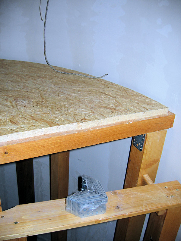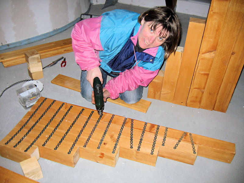 Aus verschiedenen Holzbohlen bauen wir die Plattform in 1.55m Höhe und die Zugangstreppe auf. Das Holz wird mit einer Holzschutzlassung imprägniert.