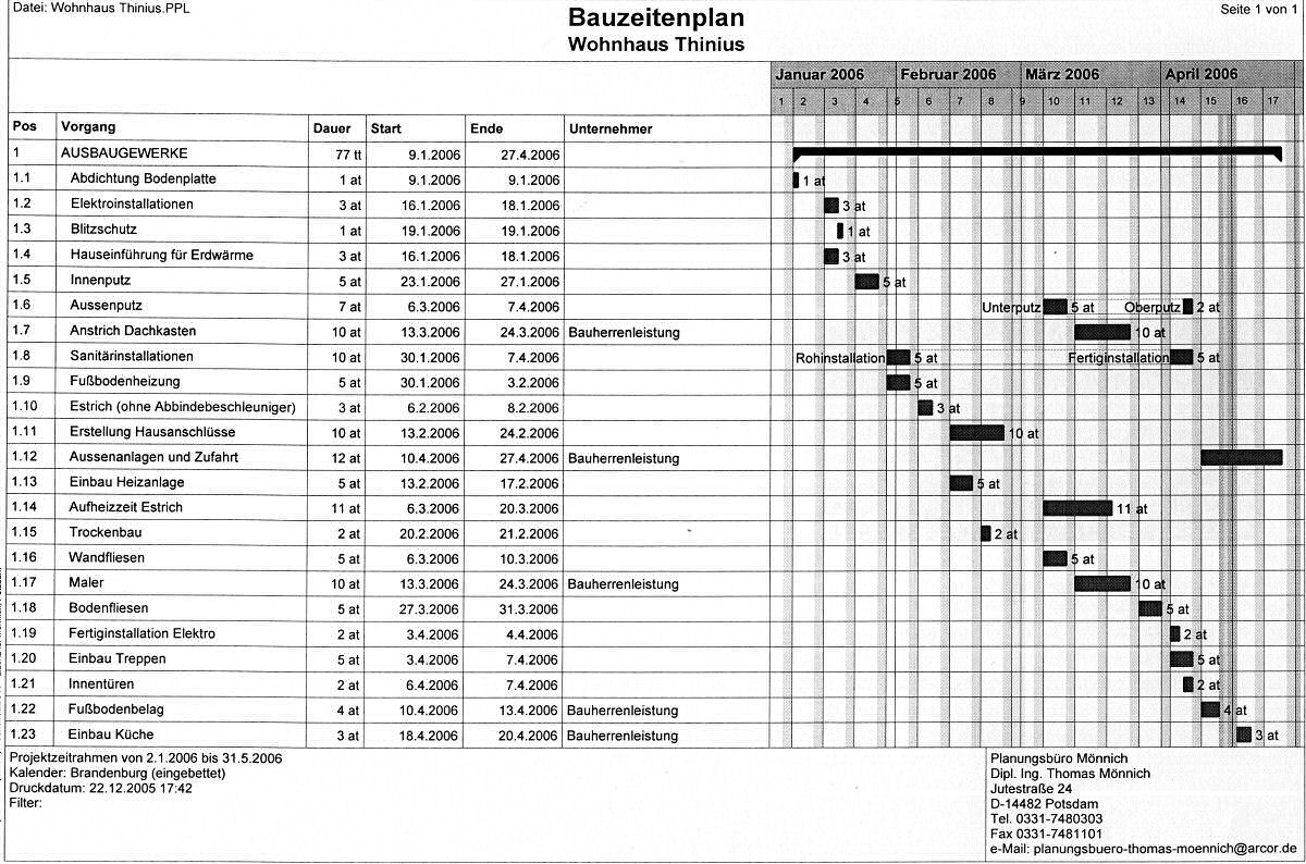 Treffen mit unserem Bauingenieur Herrn Mönnich, der Zeitplan für die Ausbaugewerke wird erstellt. Geplanter Einzug ist Ende April 2006